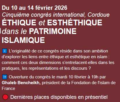 Intitulé “Éthique et esthétique dans le patrimoine islamique“, il se tient à Cordoue (Espagne) du 10 au 14 février 2026.