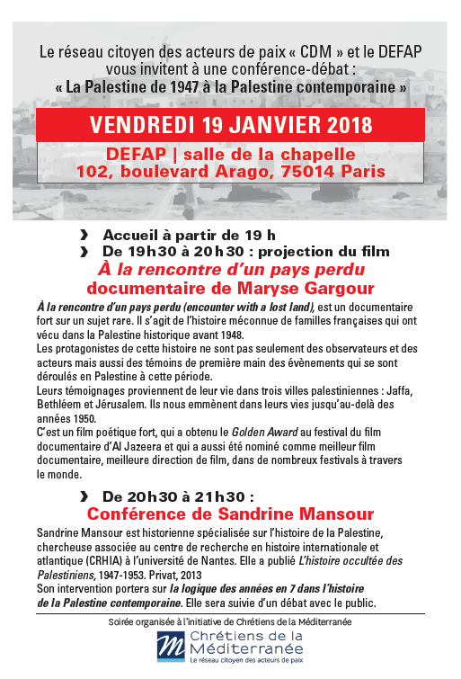 Conférence-Débat : La Palestine de 1947 à la Palestine contemporaine