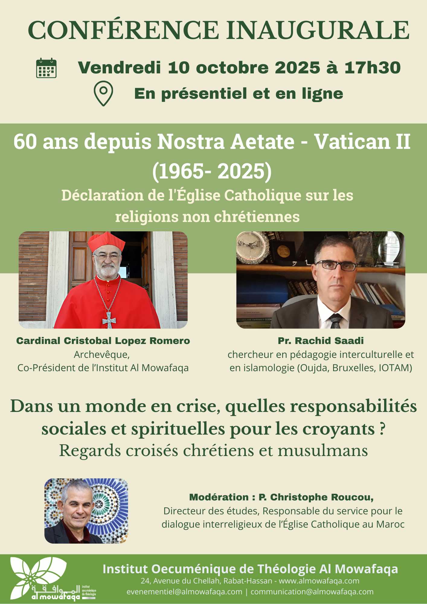 À l’occasion de la rentrée académique 2025-2026, l’Institut Œcuménique de Théologie Al Mowafaqa a l’honneur de vous convier à sa conférence inaugurale, qui se tiendra le :