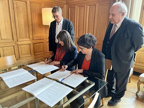 Signature de la convention entre Anne Hidalgo et Valérie Régnier